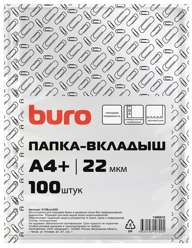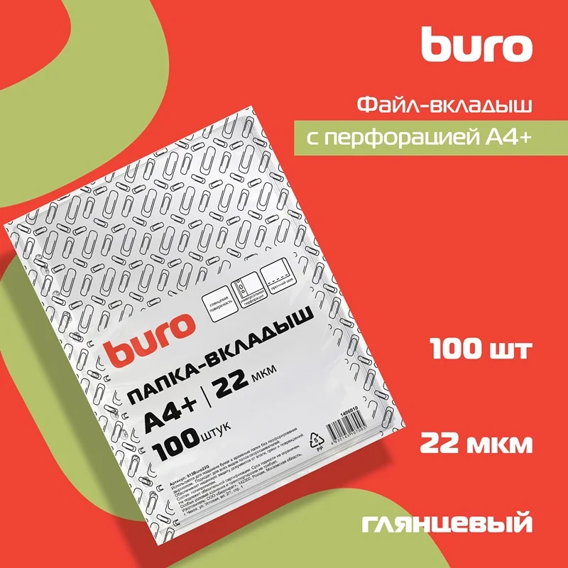 Файл-вкладыш А4 Buro глянцевый, 22мкм, 100шт/уп