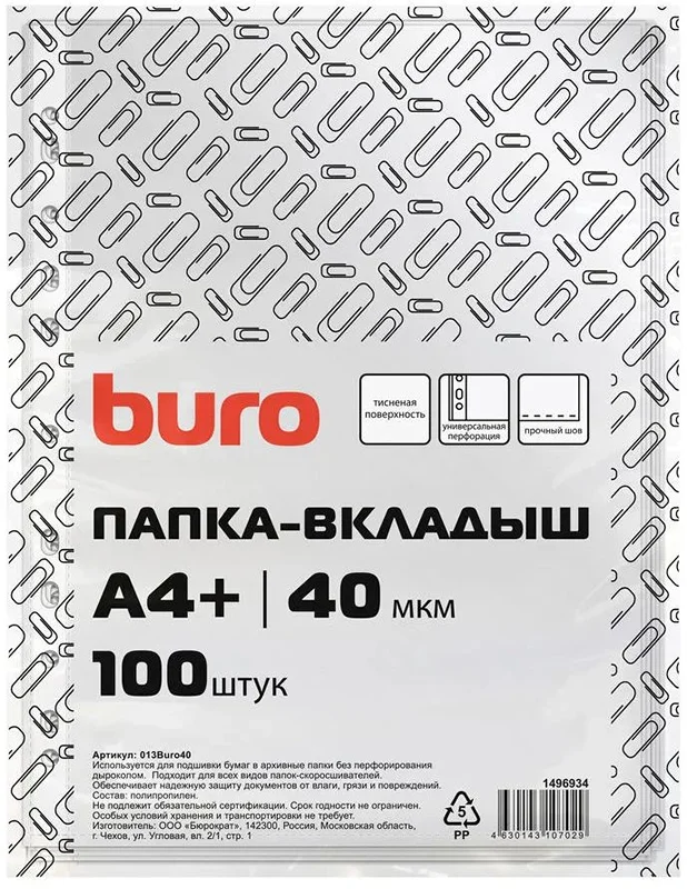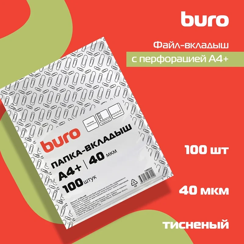Файл-вкладыш А4 Buro тисненый, 40мкм, 100шт/уп