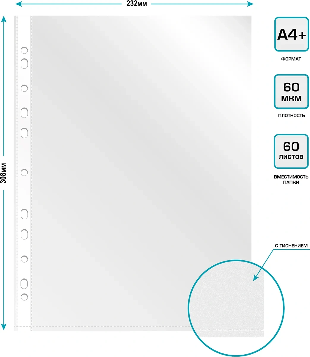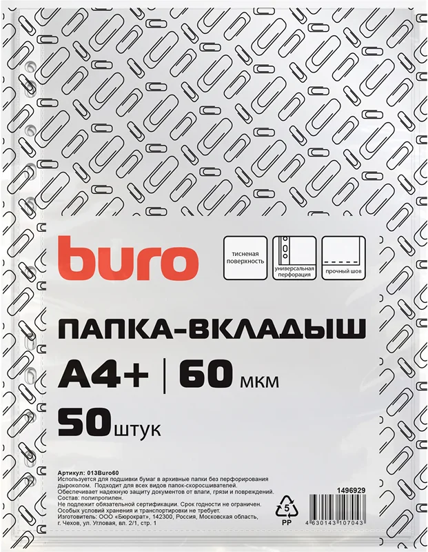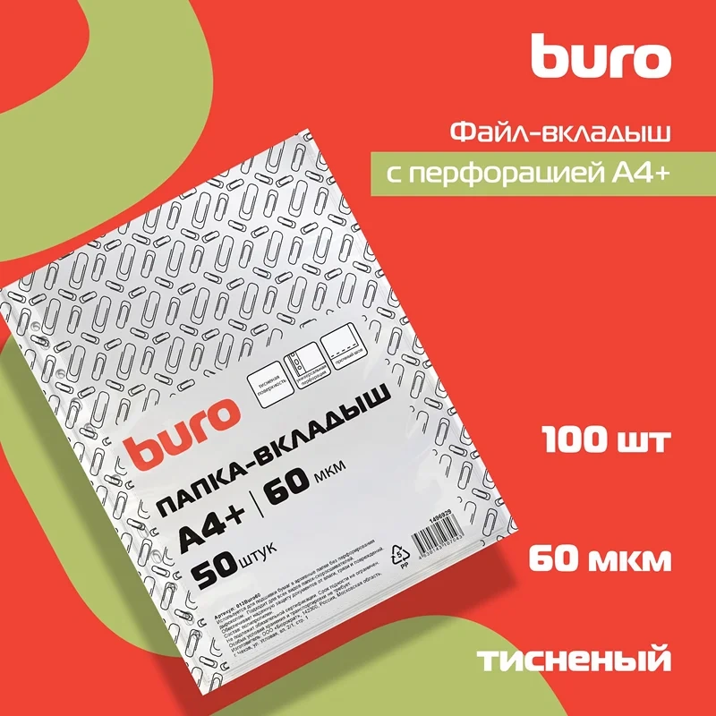 Файл-вкладыш А4 Buro тисненый, 60мкм, 50шт/уп