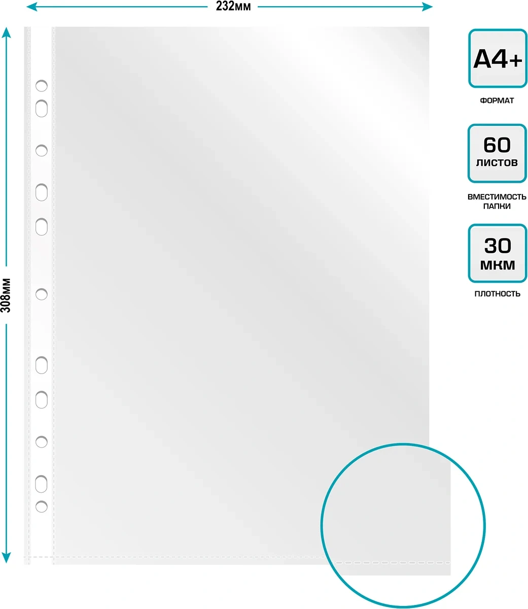 Файл-вкладыш А4+ Бюрократ Премиум глянцевый, 30 мкм, 25шт/уп