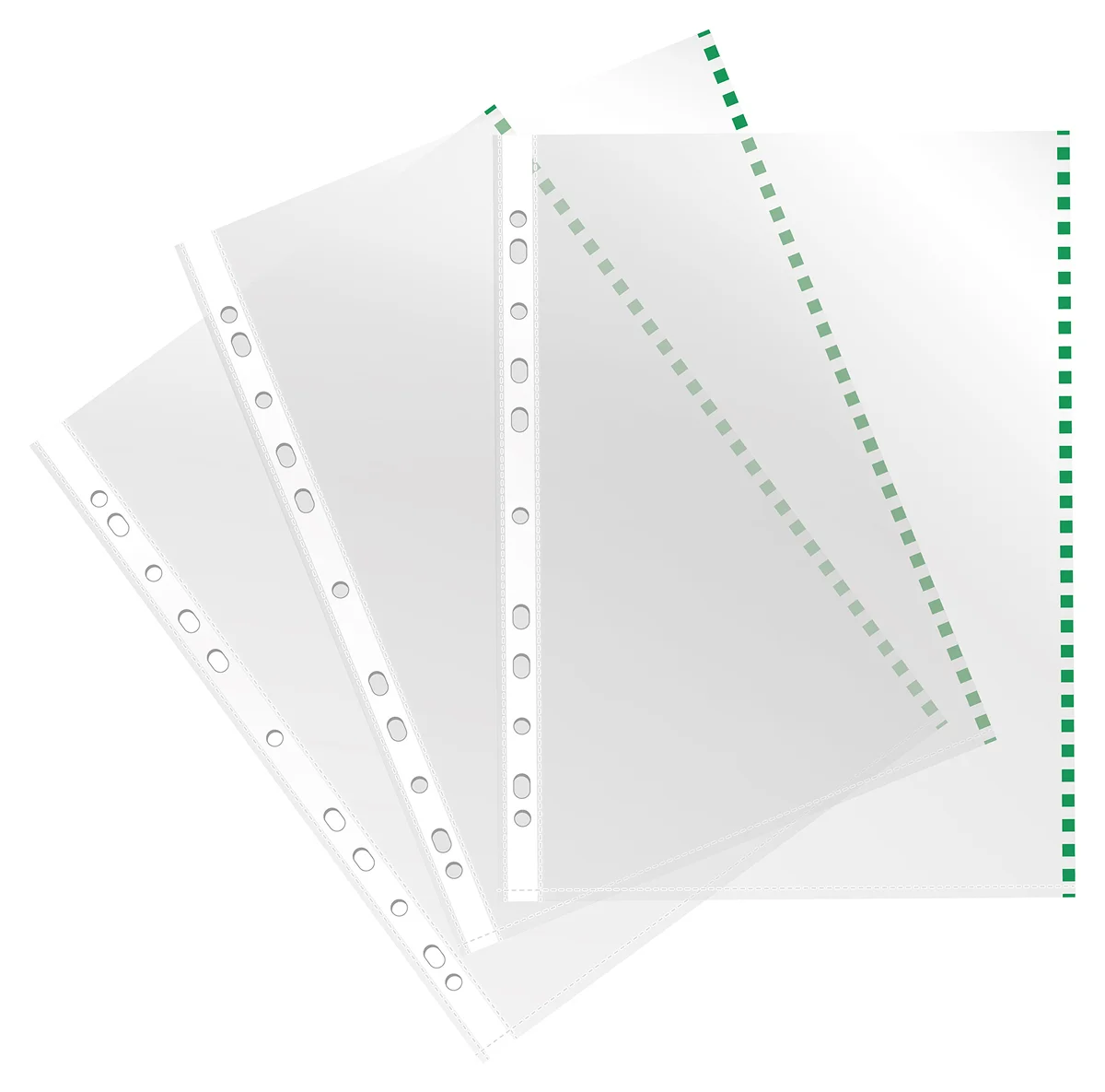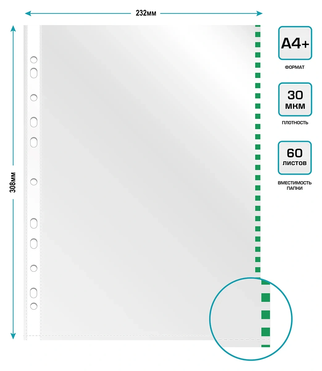 Файл-вкладыш А4+ Бюрократ Премиум зеленый край глянцевый, 30 мкм, 50шт/уп