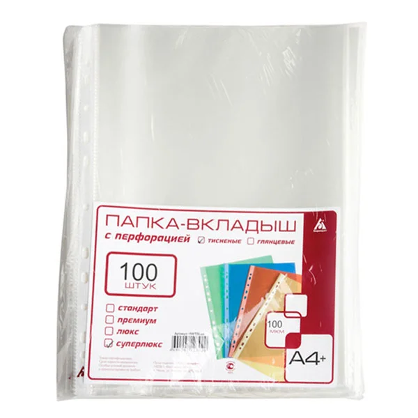 Файл-вкладыш А4+ Бюрократ СуперЛюкс глянцевый, 100 мкм, 100шт/уп