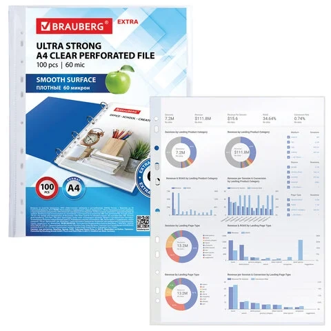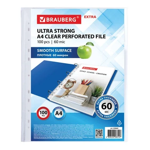 Карман с перфорацией премиального качества из ПП, формат А4+. Матовый. Стандартная перфорация позволяет использовать карманы с любыми типами папок. Не искажает цвета. Вмещает до 50 листов А4. 60 микрон.