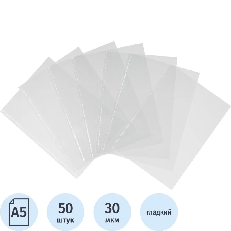 Файл-вкладыш А5 Attache прозрачный, гладкий, 30мкм, 50шт/уп