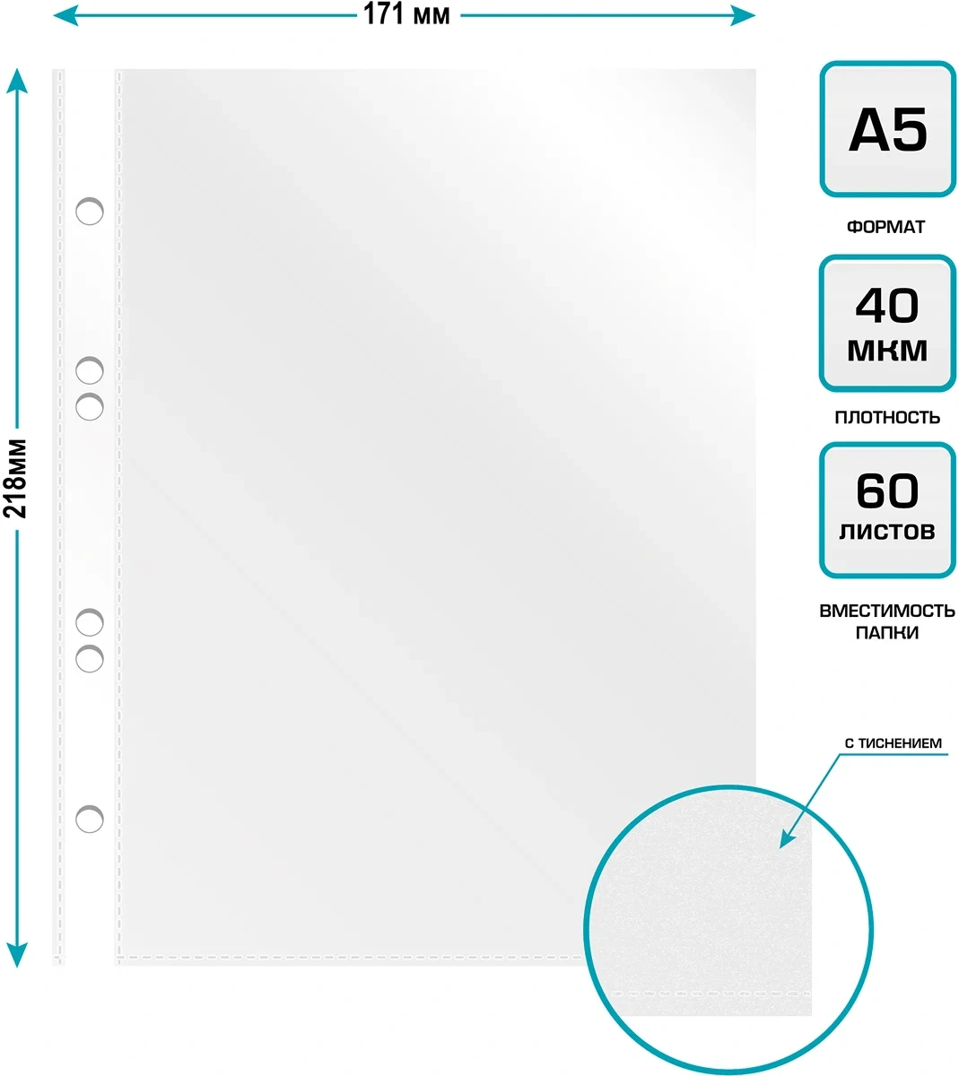 Файл-вкладыш А5 Бюрократ Премиум тисненый, 40мкм, 100шт/уп, 013A5T