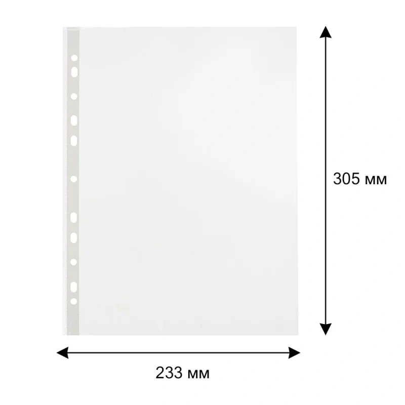 Файл-вкладыш Attache (Attache Economy) А4 40 мкм прозрачный гладкий 100 штук в упаковке. Файл-вкладыш прозрачный формата А4 с гладкой поверхностью. Изготовлен из полипропиленовой плёнки (толщина 40 мкм). Размер: 233×305 мм. Универсальная боковая перфорация подходит для хранения документов в любых папках с кольцевым механизмом и скоросшивателем. Вертикальная ориентация, толщина 40 мкм, вместимость файла до 60 листов бумаги.