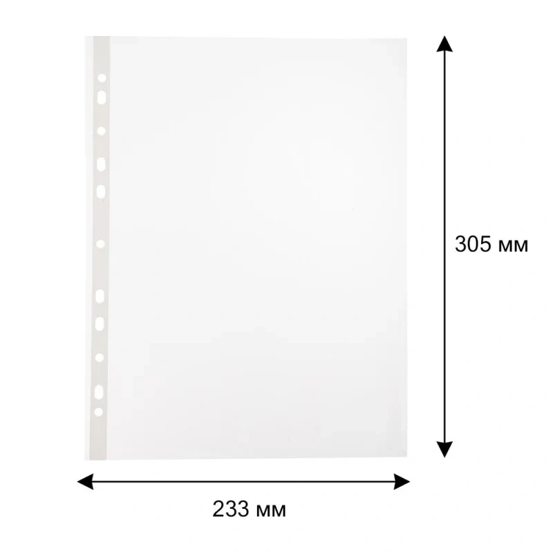 Файл-вкладыш прозрачный формата А4 с рифленой поверхностью. 100 штук в упаковке. Универсальная боковая перфорация подходит для хранения документов в любых папках с кольцевым механизмом и скоросшивателем. Вертикальная ориентация, толщина 30 мкм, вместимость файла до 50 листов бумаги. В рамках обновления дизайна упаковки с сохранением всех потребительских характеристик товара, допускается поставка данной продукции в двух вариантах дизайна упаковки.