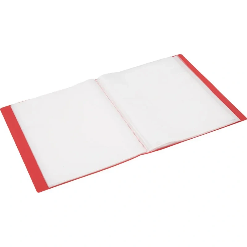 Папка с файлами Attache формата А4 предназначена для хранения документов без предварительной перфорации. Изготовлена из пластика красного цвета толщиной 0,6 мм. Имеет 80 прозрачных полипропиленовых вкладышей для удобного хранения и демонстрации документов. Файловая папка вмещает до 160 листов. Ширина корешка — 35 мм. Плотность файлов 25 мкм.