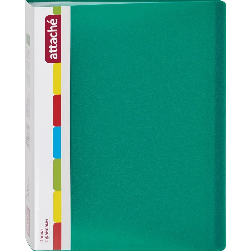 Папка с файлами Attache предназначена для хранения материалов и документов формата А4, требующих упорядоченности и наглядного обзора: отчетов, презентаций, коммерческих и персональных портфолио. Изготовлена из пластика толщиной 0,7 мм зеленого цвета, имеет 40 прозрачных вкладышей, а также карман на корешке для сменной этикетки. Вмещает до 80 листов стандартной плотности. Преимуществом файловой папки является надежная сохранность документов в отличном состоянии без предварительной перфорации. Плотность файлов 25 мкм.