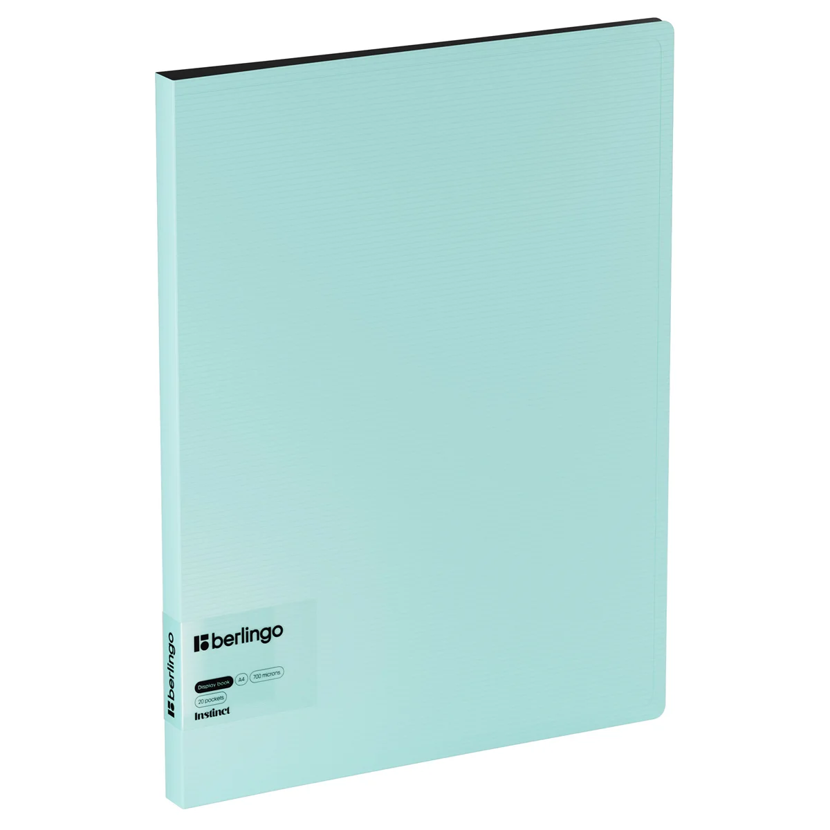 Папка Berlingo Instinct формата А4 содержит 20 вкладышей, которые надёжно защищают листы от повреждений. Листы-карманы увеличенной толщины 30мкм надежно скреплены сваркой. Размер изделия: 310*235*17 мм, ширина корешка: 17 мм, толщина материала: 700 мкм. Насыщенный пастельный голубой цвет внешней стороны в сочетании с фактурой 'горизонтальные линии', черный цвет внутренней поверхности. На внутренней стороне обложки оснащена плотным прозрачным карманом для удобного хранения мелочей: ручки, заметок, визиток, дисков, флешек и др. Папка вмещает до 100 бумажных листов. Упакована в индивидуальный прозрачный пакет