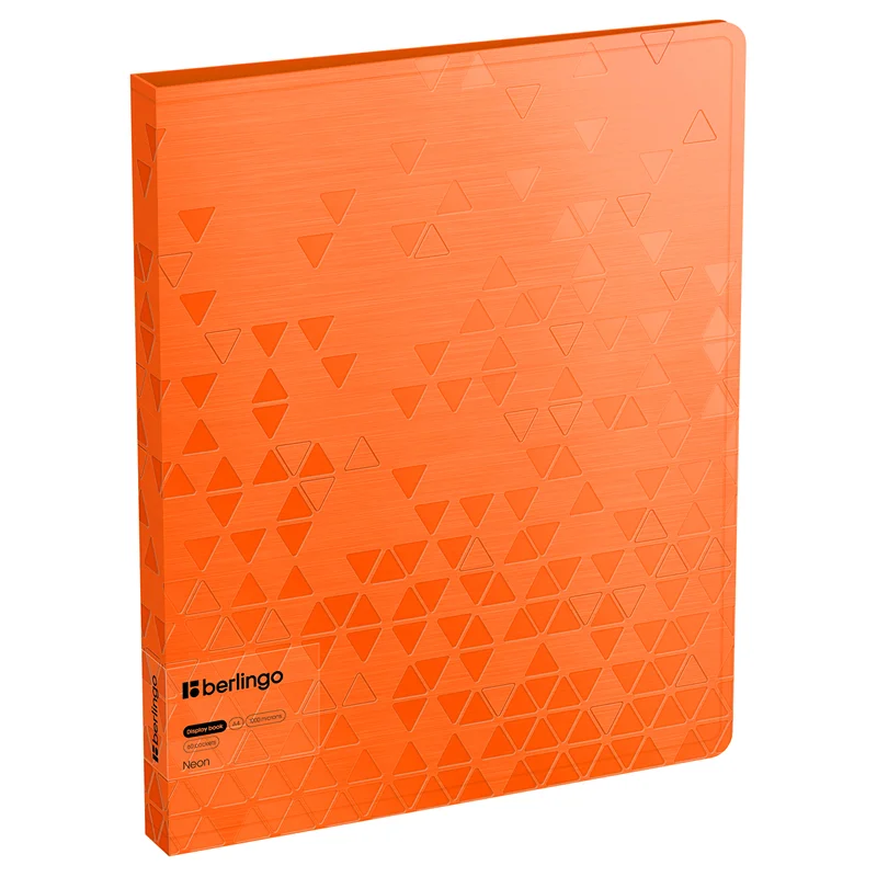 Папка Berlingo Neon формата А4 содержит 60 вкладышей, которые надёжно защищают листы от повреждений. Листы-карманы увеличенной толщины 30мкм надежно скреплены сваркой. Размер изделия: 310*235*30 мм, ширина корешка: 30 мм, толщина материала: 1000 мкм. Изготовлена из высококачественного полипропилена с матовой текстурой поверхности «рельефные треугольники», на которой не видно отпечатков пальцев и мелких царапин. На внутренней стороне обложки оснащена плотным прозрачным карманом для удобного хранения мелочей: ручки, заметок, визиток, дисков, флешек и др. Папка вмещает до 300 бумажных листов. Упакована в индивидуальный прозрачный пакет
