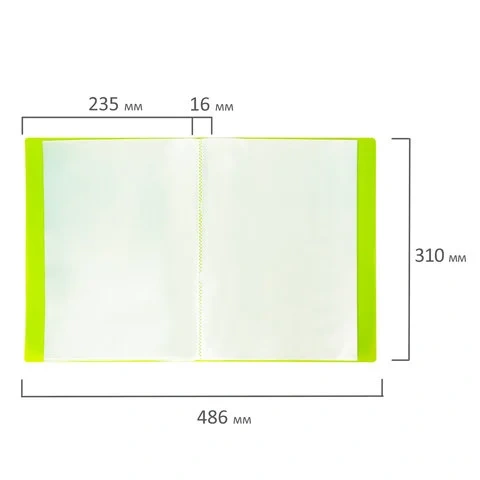 Для маркировки содержимого на корешок наклеена этикетка. Папка изготовлена из качественного пластика толщиной 0,7 мм с антибликовой фактурой, а ширина корешка составляет 16 мм. Содержит 20 вкладышей, позволяющих хранить документы формата А4 и обеспечивающих их надежную защиту от попадания влаги, пыли и прочих повреждений. Поставляется в индивидуальной упаковке.