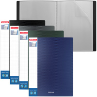 Папка файловая формата А4 из высококачественного пластика с текстурой поверхности 'даймонд', на которой не видно отпечатков пальцев и мелких царапин. Предназначена для хранения и просмотра документов. Папка содержит 40 прозрачных листов-карманов, надежно скрепленных сваркой. Карман на корешке папки предназначен для информационной карточки. Цвет папки – ассорти: черный, синий, зеленый, серый. Папка вмещает до 100 бумажных листов.