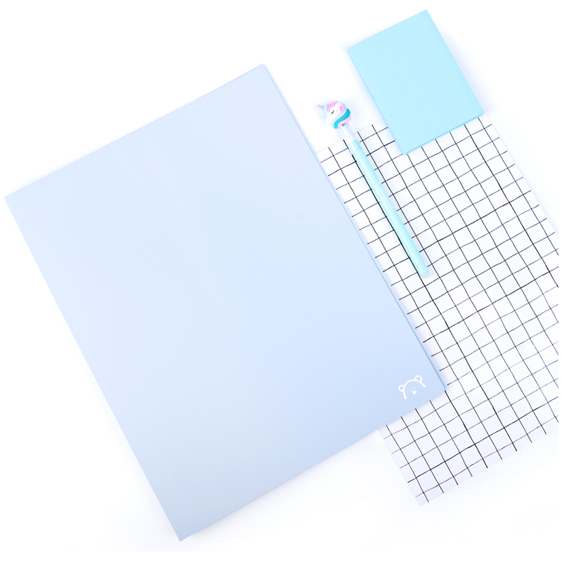 Папка MESHU с вкладышами в стильном современном дизайне нежного голубого цвета привлекает внимание матовой, приятной на ощупь, фактурой и милым элементом в виде голографического логотипа.Создать эффектный канцелярский набор в дополнение к папке помогут другие товары MESHU из серии Dew.