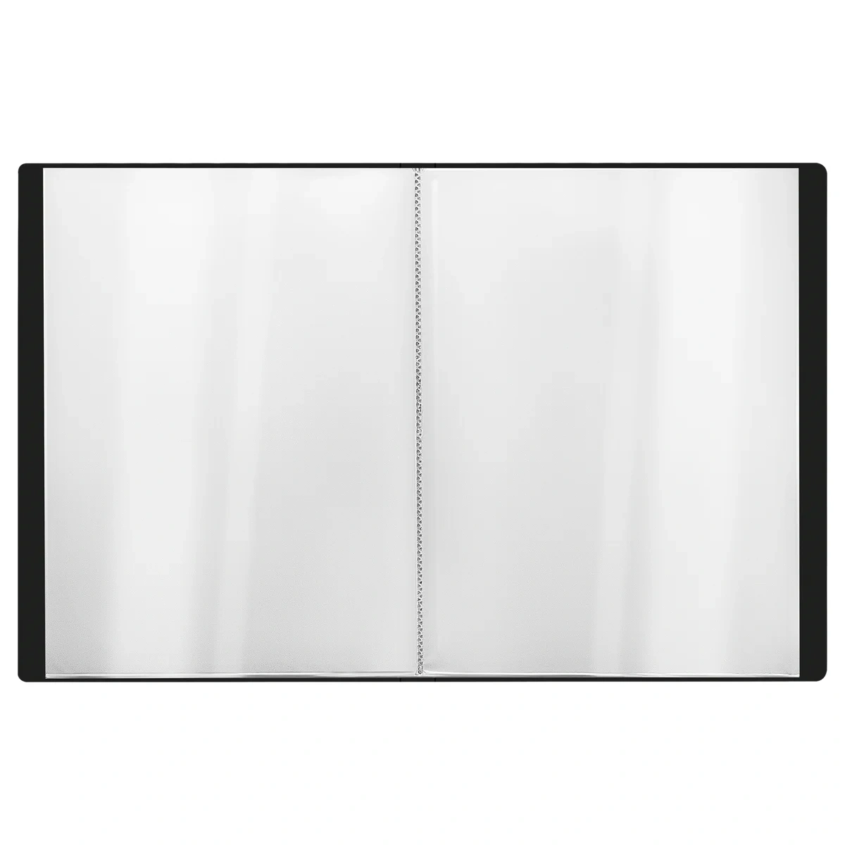 Папка со 100 вкладышами «СТАММ» серии «Стандарт» предназначена для хранения бумаг формата А4. Цвет папки – чёрный. Папка изготовлена из качественного полипропилена толщиной 800 мкм с текстурой «песок». Тип скрепления – термосварка. Размер изделия составляет 310*235 мм. Ширина корешка – 30 мм. Бумагам, вложенным в папку, не требуется перфорация дыроколом. На корешке папки имеется карман. Папка упакована в индивидуальный пакет.