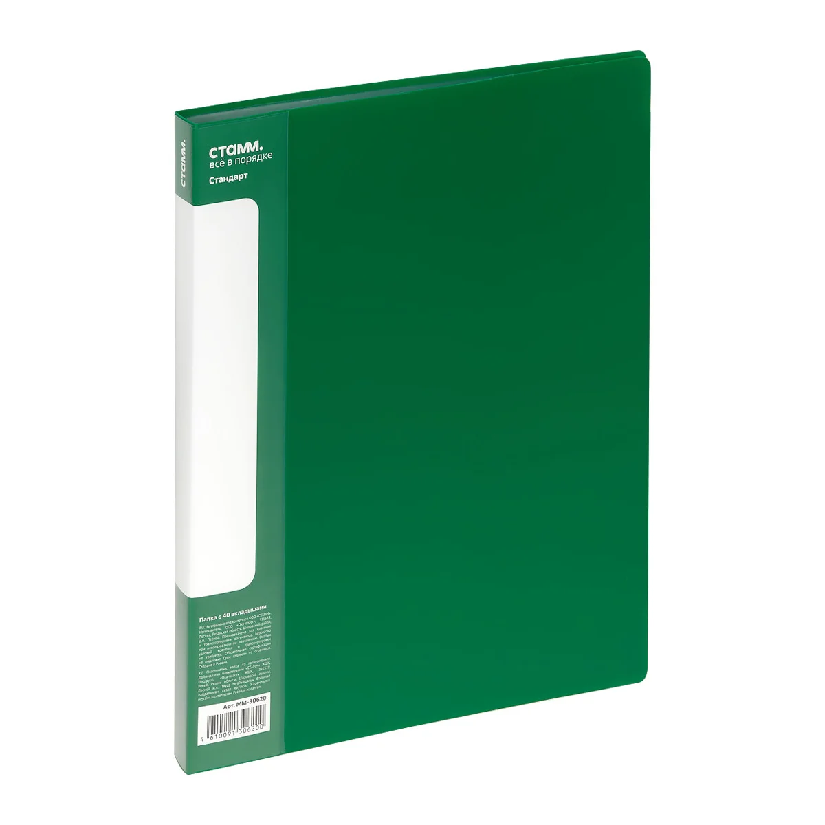 Файловая папка Стамм Стандарт зеленая, на 40 файлов, 21мм, 600мкм