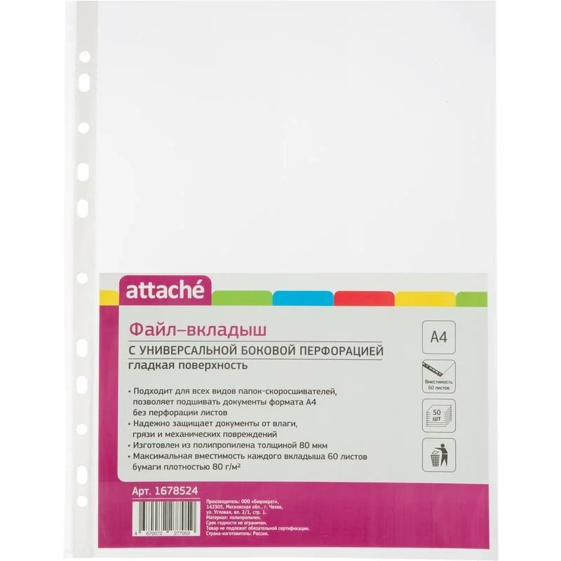 Файл-вкладыш А4, 80мкм, Attache, гладкий, 50шт/уп