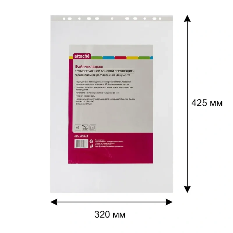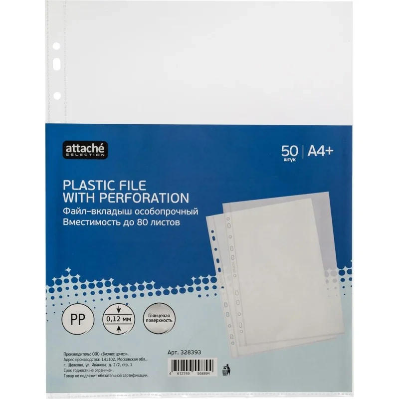 Файл-вкладыш А4+ Attache 100 мкм, 50шт/уп