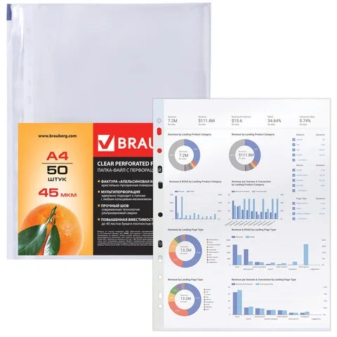Файл-вкладыш А4 Brauberg прозрачный, 45 мкм, 50шт/уп, апельсиновая корка