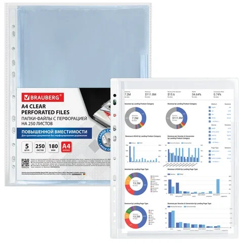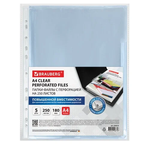 Файл-вкладыш А4 Brauberg прозрачный, объемный, 180 мкм, 5шт/уп