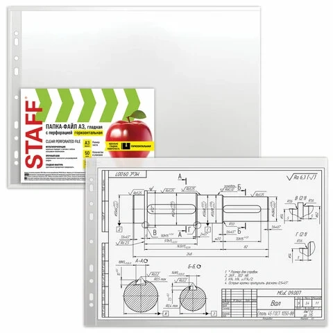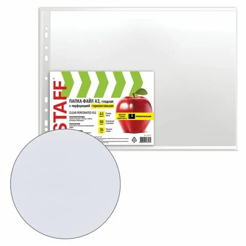 Файл-вкладыш А3 Staff Яблоко глянцевый, вертикальный, 35 мкм, 50шт/уп