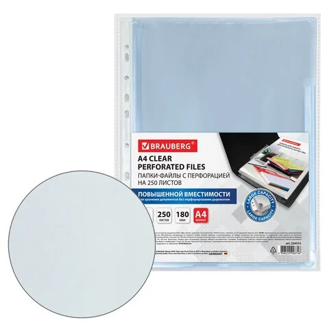 Файл-вкладыш А4 Brauberg прозрачный, 180 мкм, гладкий, для объемного хранения, 10шт/уп