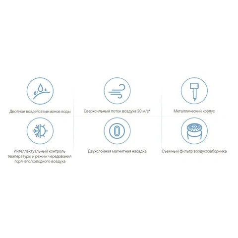 Сверхвысокая скорость воздушного потока 20 м/с. Быстрая сушка волос без использования высоких температур. Вдохновленный принципом работы авиационных двигателей фен Xiaomi Water Ionic Hair Dryer H500 оснащен высокоскоростным мотором постоянного тока со скоростью 20 000 об/мин и семью турбинными лопастями в форме крыльев, которые создают воздушный поток, нагнетая воздух из воздуховода конической формы под давлением. Мощный поток воздуха достигает корней и быстро сушит волосы, не повреждая их.