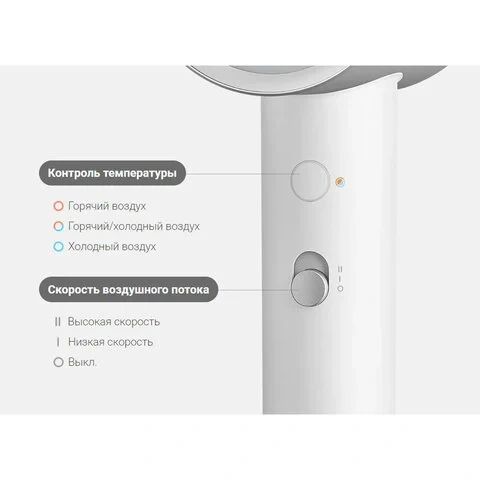 Фен XIAOMI Water Ionic Hair Dryer H500, 1800 Вт, 2 скорости, 3 температурных режима, ионизация, BHR5