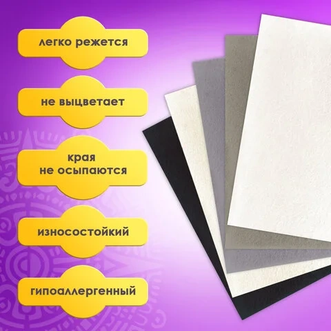 Фетр цветной для творчества Brauberg 5 цветов, А4, 5 листов, оттенки серого