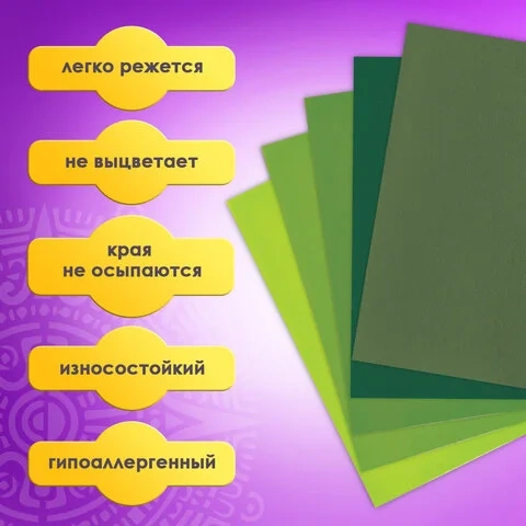 Фетр цветной для творчества Brauberg 5 цветов, А4, 5 листов, оттенки зеленого