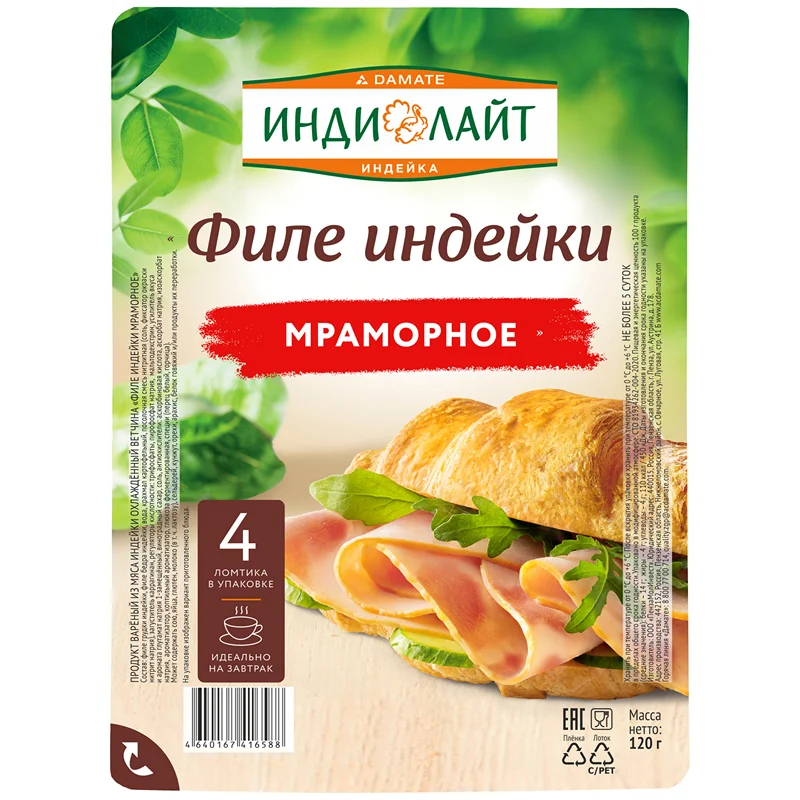 Филе мраморное - изюминка коллекции деликатесов. Настоящий компромисс между пользой для фигуры и насыщенным вкусом. Отлично подойдет как для праздничного стола, так и на каждый день для утренних бутербродов. Уникальная на рынке сервировочная нарезка европейского формата.