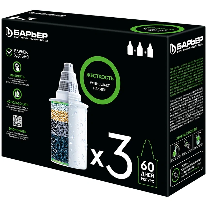 Сменная кассета БАРЬЕР 'Жесткость Х2', для жесткой воды, для всех фильтров-кувшинов БАРЬЕР, К561Р12