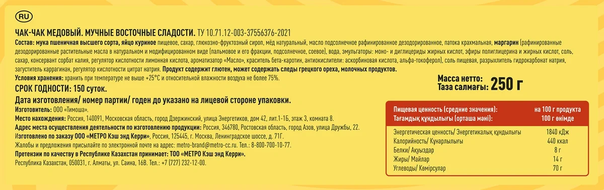 | Стандарт производства | ту 10.71.12-003-37556376-2021 |