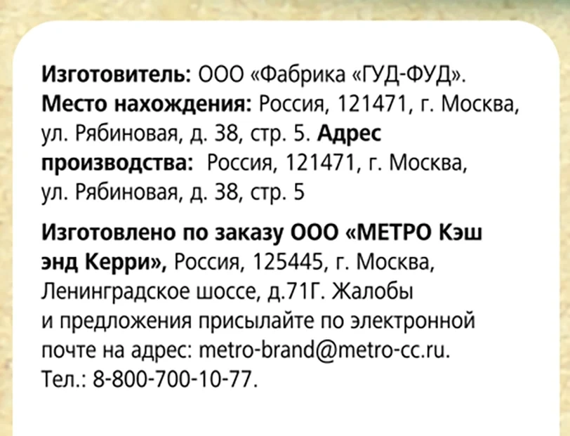 | Стандарт производства | ту 10.39.23-012-60458573-2022 |