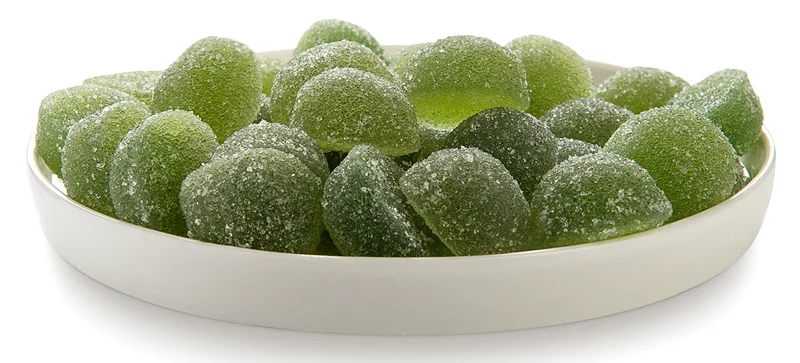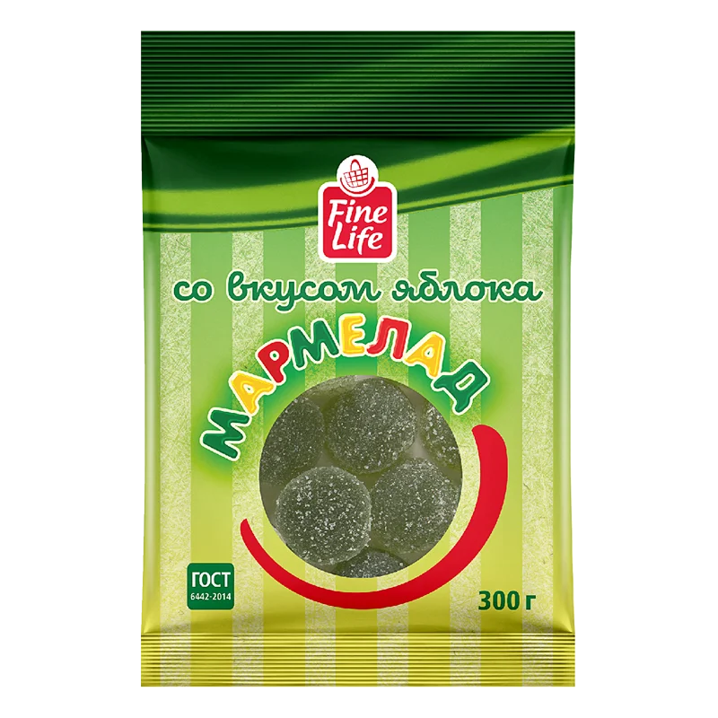 Желейный мармелад со вкусом яблока, изготовлен по классической рецептуре ГОСТ. Присутствие в мармеладе пектина делает его весьма полезным продуктом поскольку пектин обладает бактерицидными свойствами, нормализует микрофлору кишечника и улучшает пищеварение. Хорош как отдельно, так и в сочетании с выпечкой, также используется для приготовления сладких бутербродов.