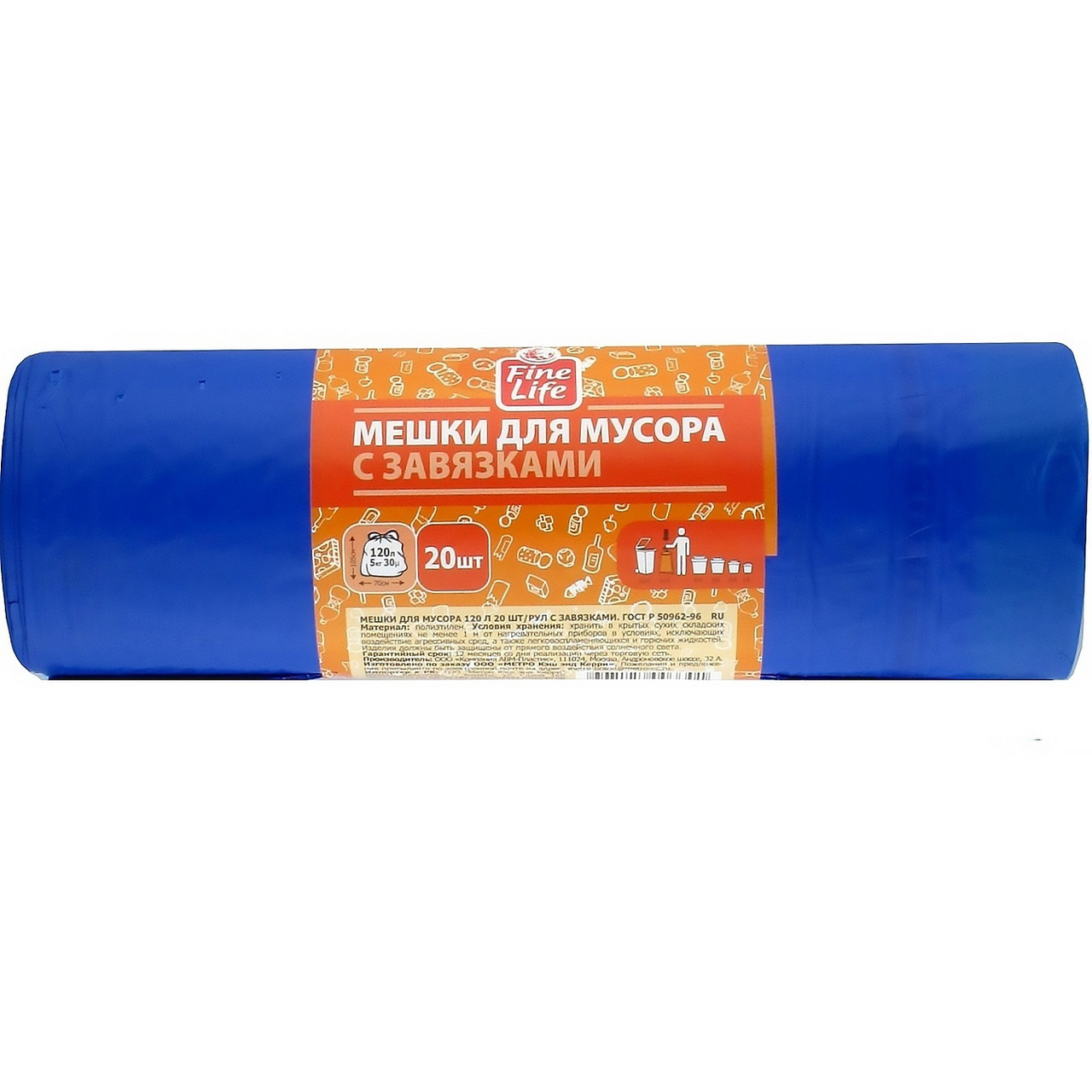 Fine Life Мешки для мусора с завязками 120л 20шт