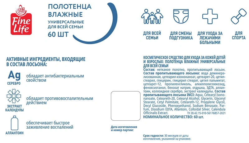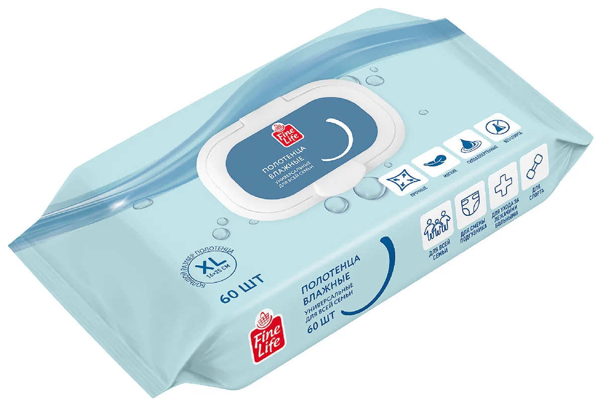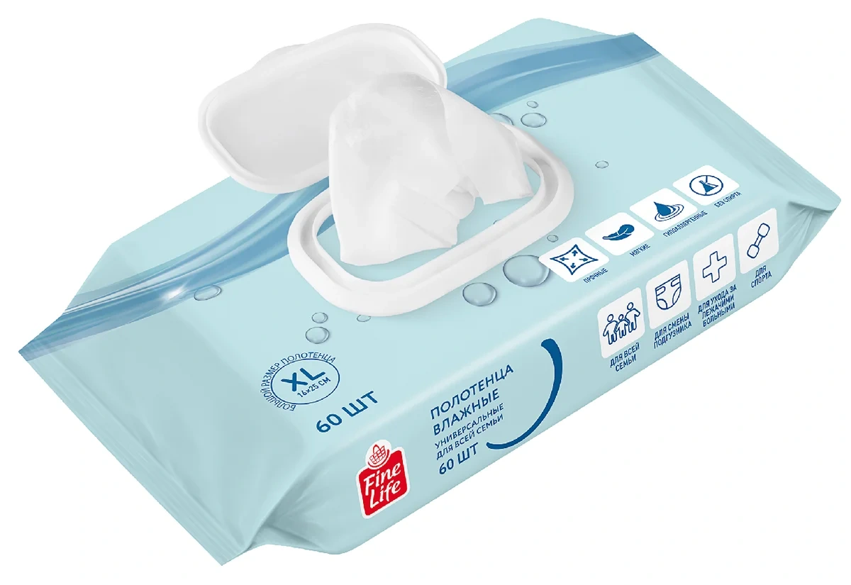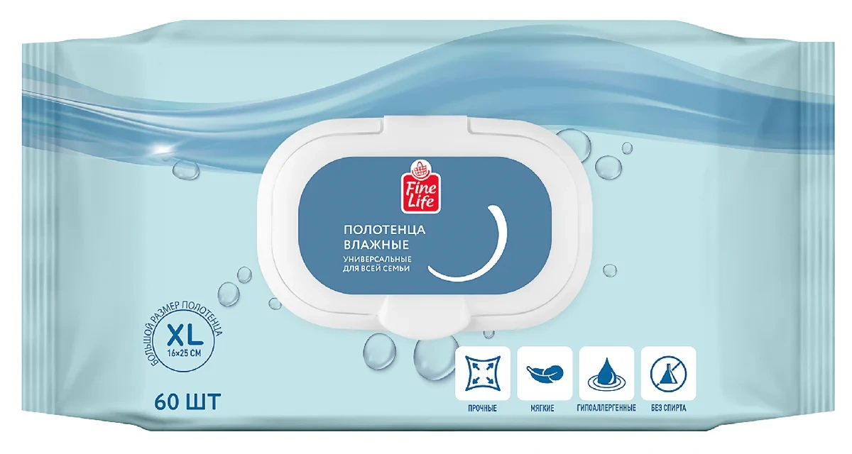 Fine Life Полотенца влажные размер XL 16 x 25см, 60шт