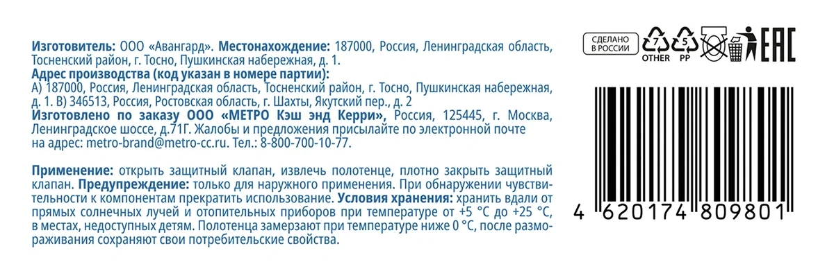 Полотенца влажные очищающие универсальные. Эффективно и бережно очищают кожу, оставляют длительное ощущение свежести. Не содержит спирта. Подходит для всех типов кожи. Удобны в применении,идеально подходят для применения в дороге.