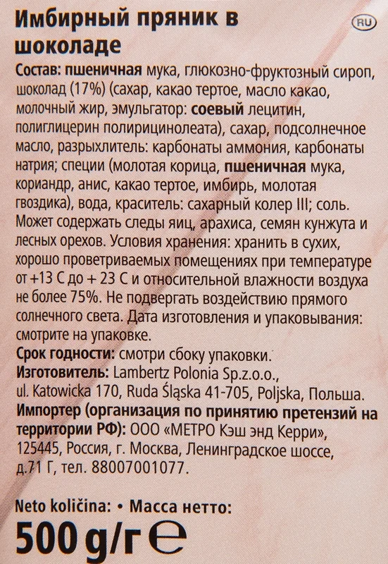 Пряники в темном шоколаде Fine Life - изысканный десерт для гурманов, прекрасный способ побаловать себя. Невероятно нежное тесто с насыщенным вкусом специй покрыто тонким слоем темного шоколада, который придает десерту особую глубину и элегантность. Этот дуэт создает гармонию вкусов, где каждый ингредиент подчеркивает и усиливает другой. Изготовитель: Lambertz Polonia sp. z o.o.