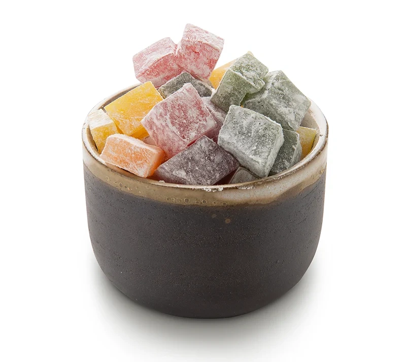 Рахат-лукум Ароматный - традиционный десерт в восточном стиле. Он буквально тает во рту и дарит отличное настроение. Оригинальное кондитерское изделие в форме мягких, полупрозрачных, сахарно-крахмальных кубиков, обсыпанных сахарной пудрой, идеально дополнит чаепитие в кругу родных и близких.