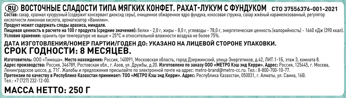 Насладитесь настоящим вкусом Востока с нашим Рахат Лукум - сладости, которые станут незабываемым акцентом вашего стола и прекрасным подарком для близких! Натуральные ингредиенты создают гармоничное сочетание, которое порадует даже самых взыскательных гурманов.