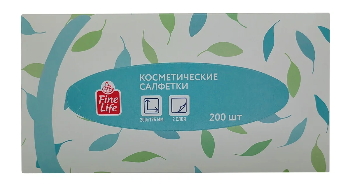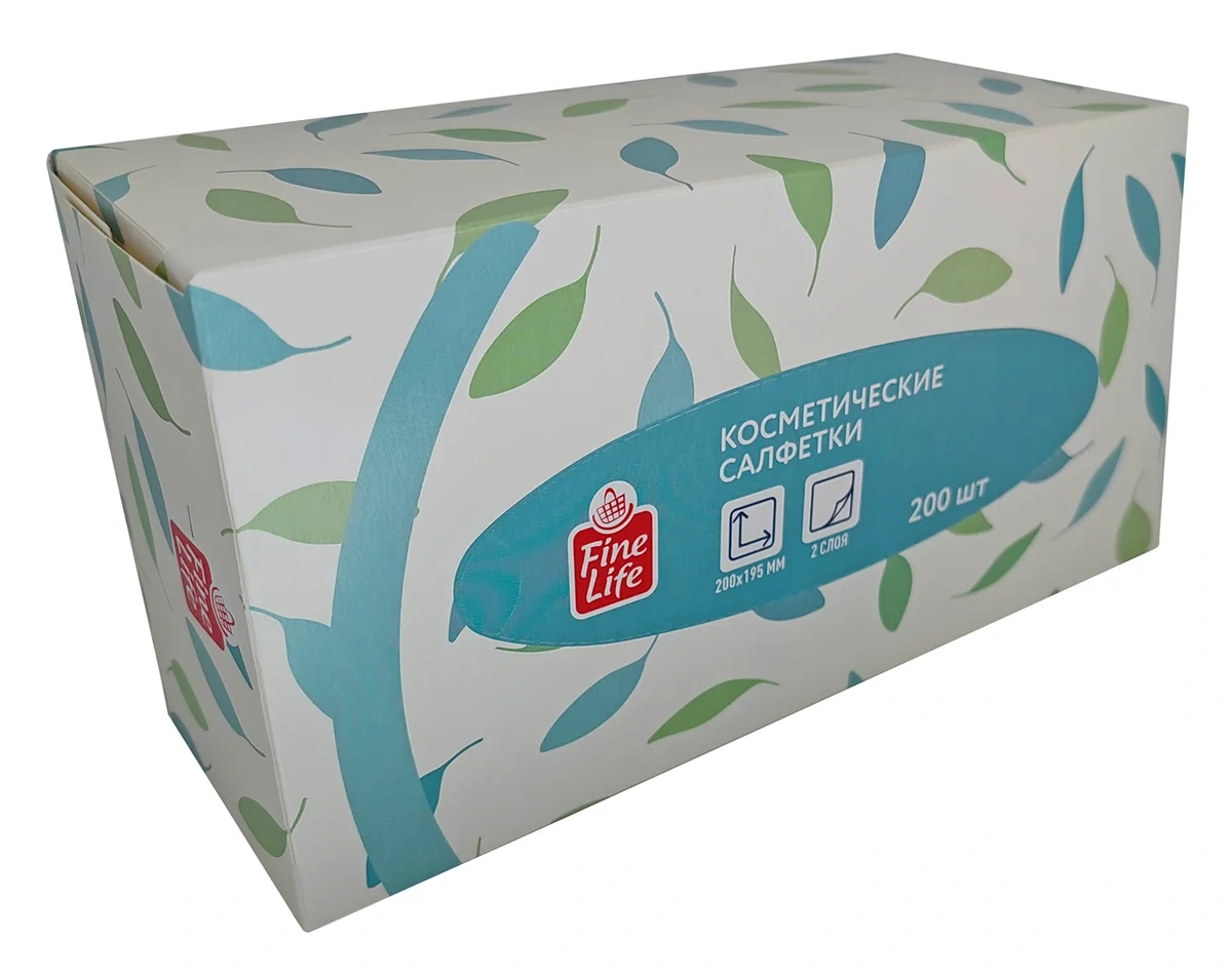 Fine Life Салфетки косметические бумажные белые двуслойные, 200шт