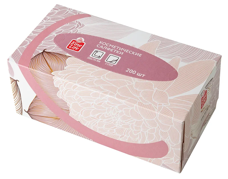 Косметические салфетки Fine Life сочетают в себе мягкость и плотность и не раздражают кожу. Они незаменимы во время простуды, помогут поправить макияж и избавят от загрязнений кожи. Яркий дизайн легко впишется в рабочий и домашний интерьер.