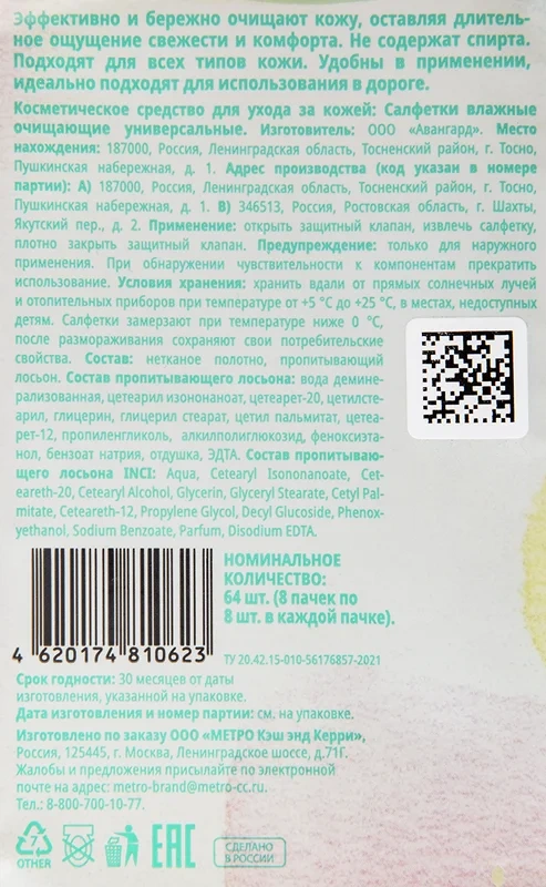 | Тип | влажные салфетки |