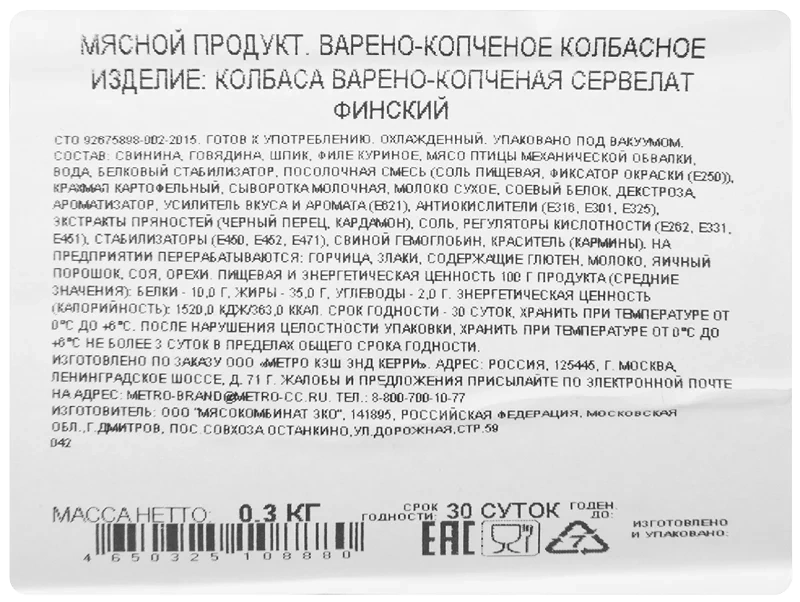 | Вид колбасы | сервелат |