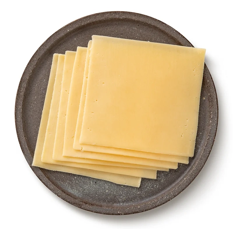 Нежный полутвердый сливочный сыр нарезан в виде ломтиков (слайсов). Идеально подходит для сырных тарелок, бутербродов, горячих блюд и винных вечеринок.