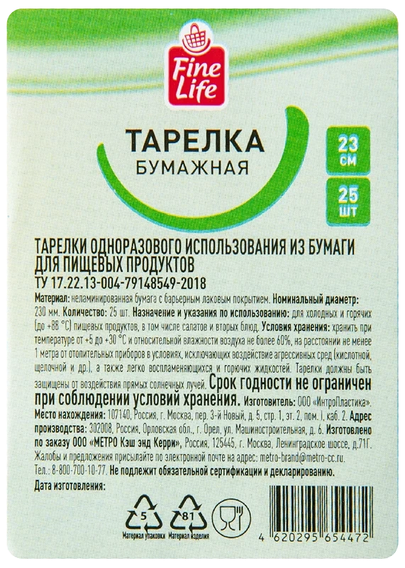 | Комплектация | тарелка одноразовая - 25 шт. |