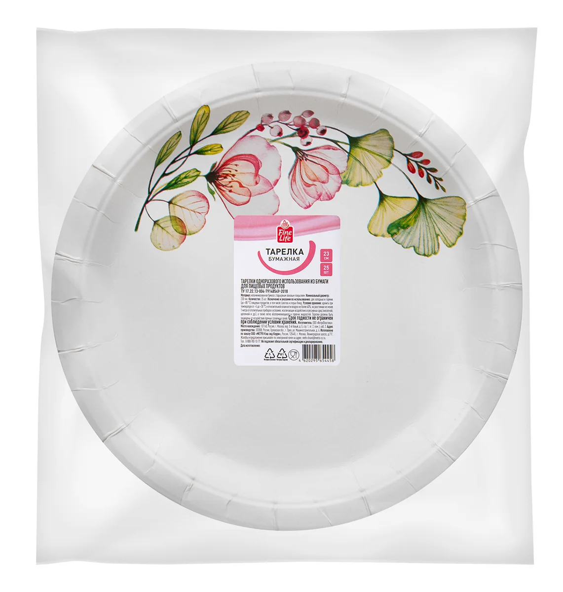 Fine Life Тарелка одноразовая бумажная 23см, 25шт