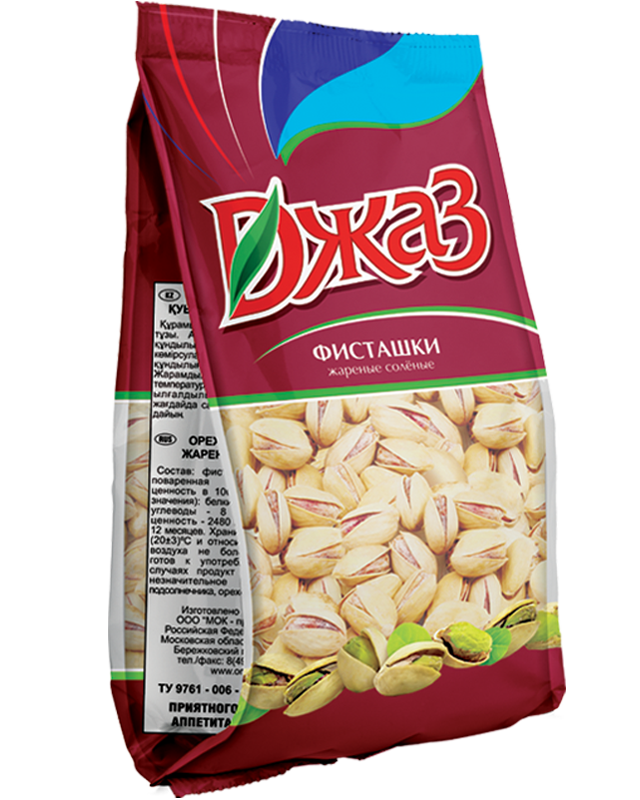 Фисташки жареные соленые ДЖАЗ, 150 г обладают солоноватым вкусом. Отборные орехи натурального раскрытия подойдут для легкого перекуса или дополнения к сливочным, творожным, воздушным десертам. В них ядро самостоятельно вскрывает внешнюю скорлупу при полном вызревании. Продукт насыщает организм минералами, витаминами Е, К, микроэлементами. Полезные компоненты выводят желчные камни, шлаки и токсины из организма, нормализуют работу кровеносной и пищеварительной систем, поддерживают работу мозга. Фисташки среднего размера подвергаются качественной обжарке с умеренным добавлением морской соли. Хорошее сочетание в кулинарии орехи составляют с рукколой, грушей и фетой. Они оттеняют вкус курицы, черники, ризотто, рисовой каши. Из готовых фисташек создаются различные соусы, песто, плов, пикантные супы, салаты. Продукт поставляется в прочном пакете флоу-пак, который защищает от влаги и солнечных лучей, продлевая срок годности содержимого. В закрытой упаковке орехи хранятся до 12 месяцев при температуре 17-23?. Пищевая ценность на 100 г: белки 18 г, жиры 73 г, углеводы 5 г. Калорийность: 601 ккал. Тип продукта: орехи. Вид: фисташки. Тип обработки: жареные. Вкус: соленые. Условия хранения: при температуре не выше + 25°С и относительной влажности воздуха 75%. Срок хранения: 8 мес. Особенности состава: без ГМО. «ДЖАЗ» - это наша первая торговая марка. И как любому первенцу, ей уделяется особое внимание. Начиналась торговая марка с выпуска арахиса и фисташек. А сегодня - это широчайший ассортимент практически всех видов орехов, различные виды смесей орехов и сухофруктов.