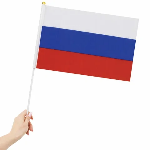 Флаг России ручной 30х45 см, без герба, с флагштоком, BRAUBERG, 550182, RU14